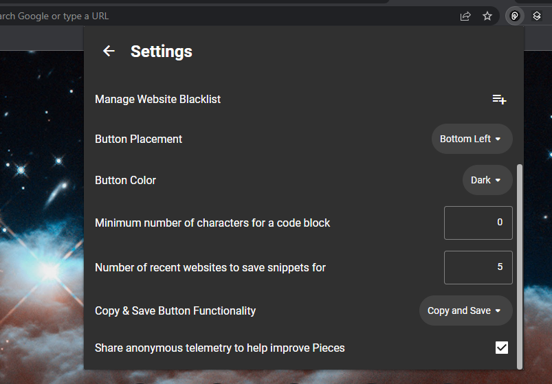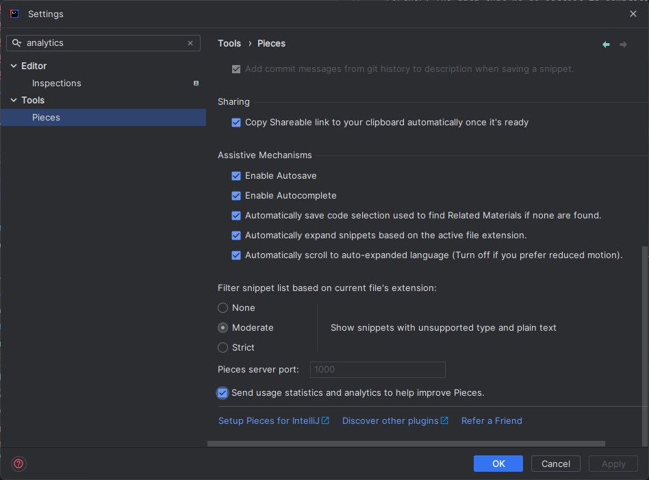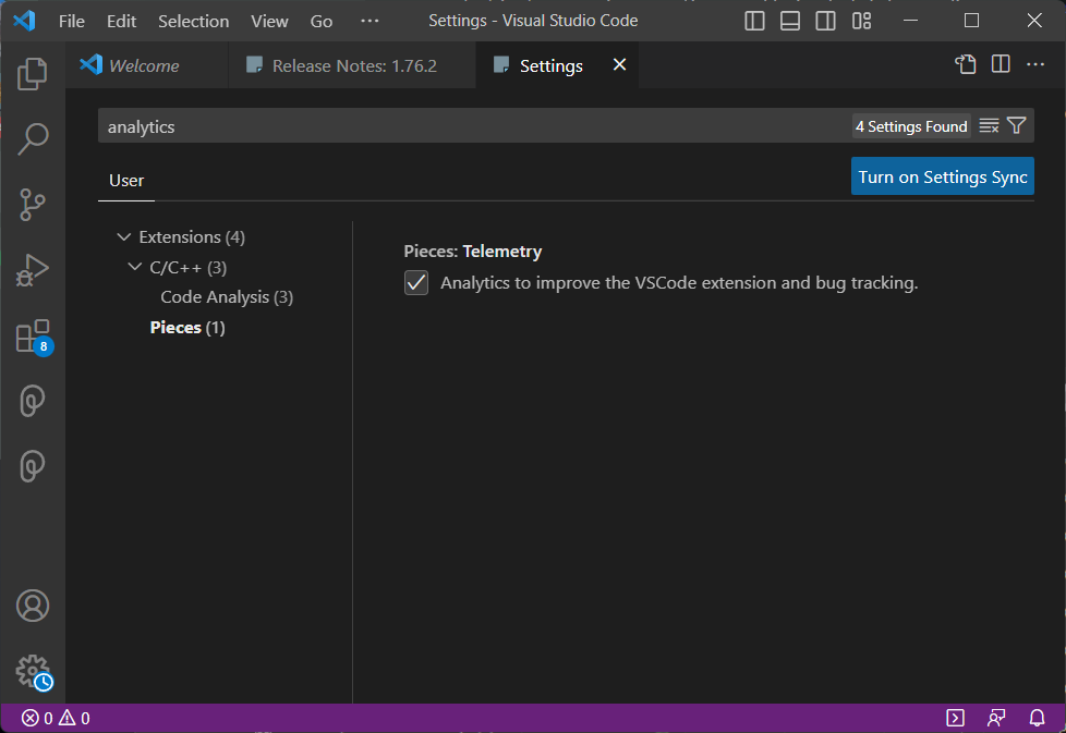 Here are some screenshots of Telemetry opt-outs from the Pieces products: